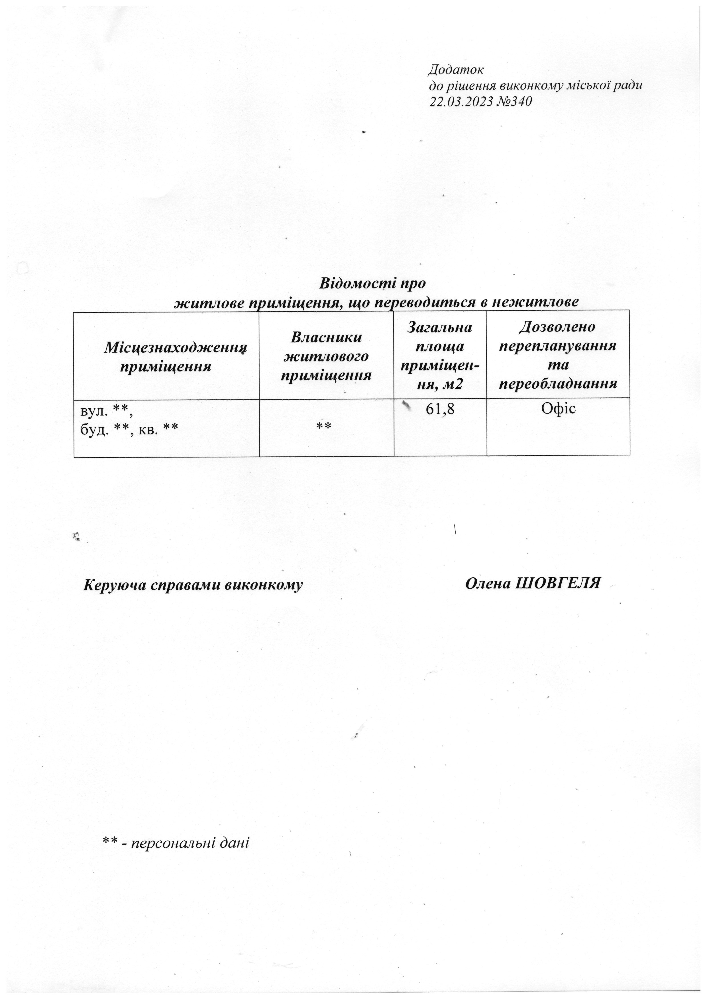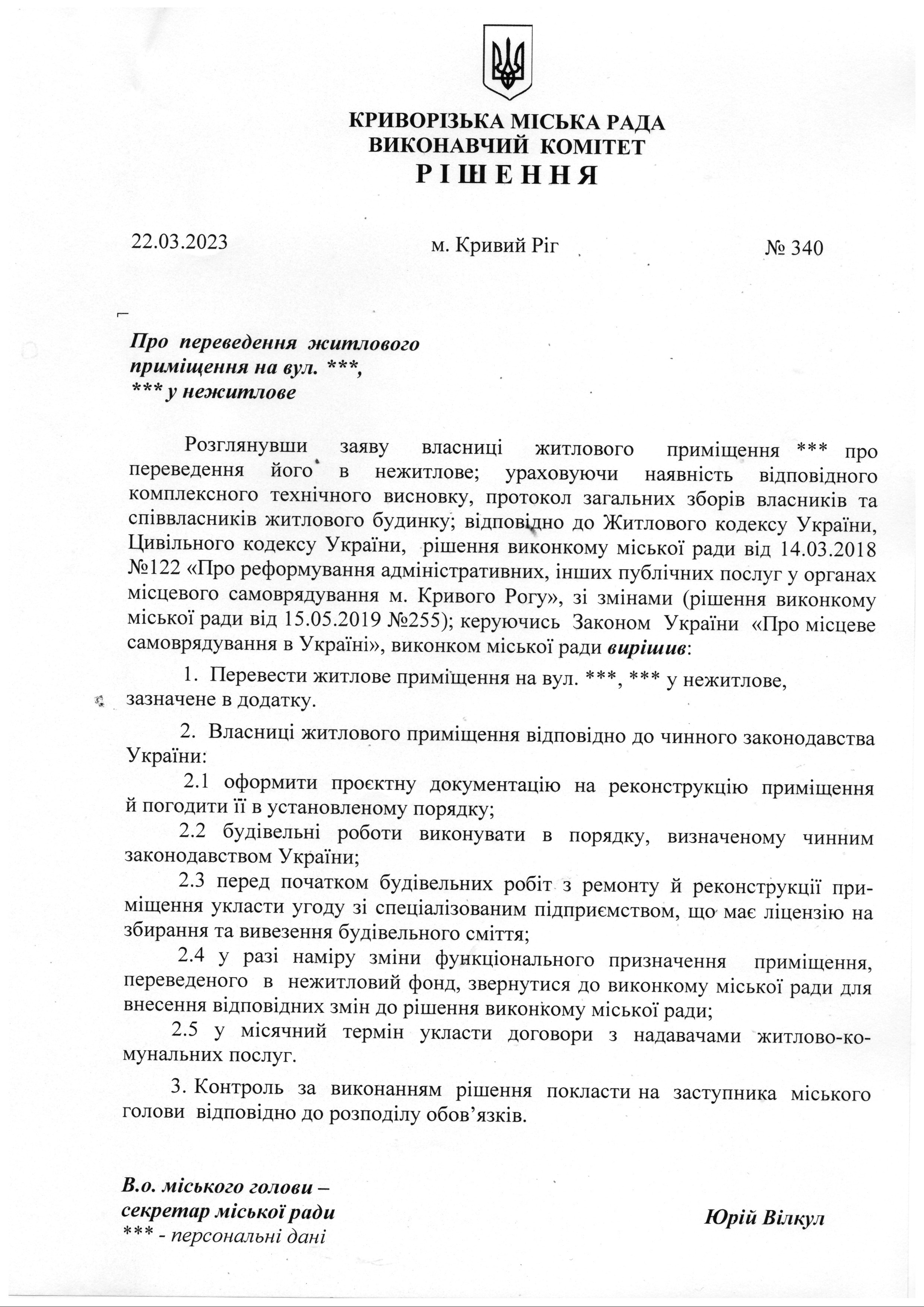 Рішення № 340 від 22.03.2023: