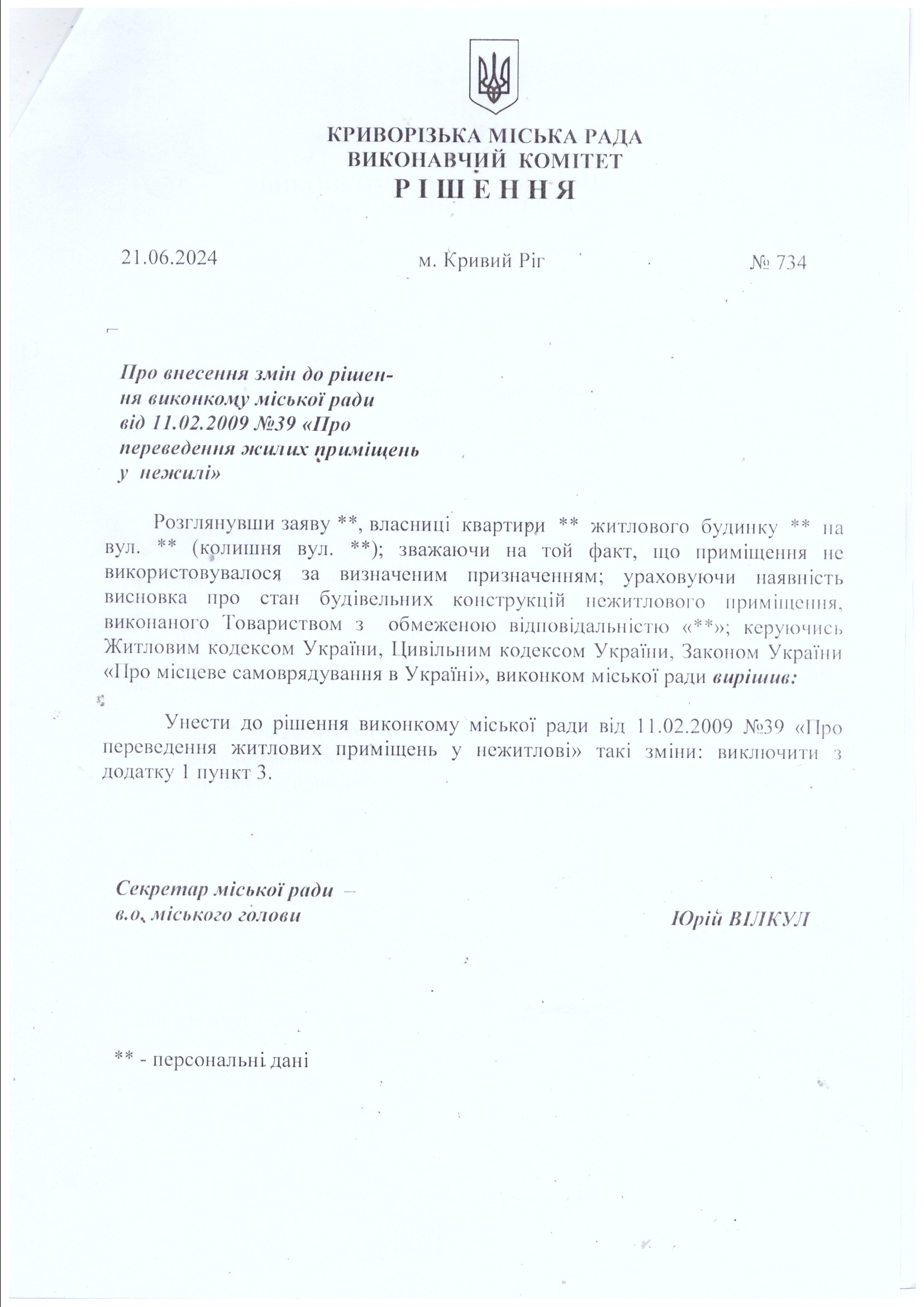 Рішення № 734 від 21.06.2024:
