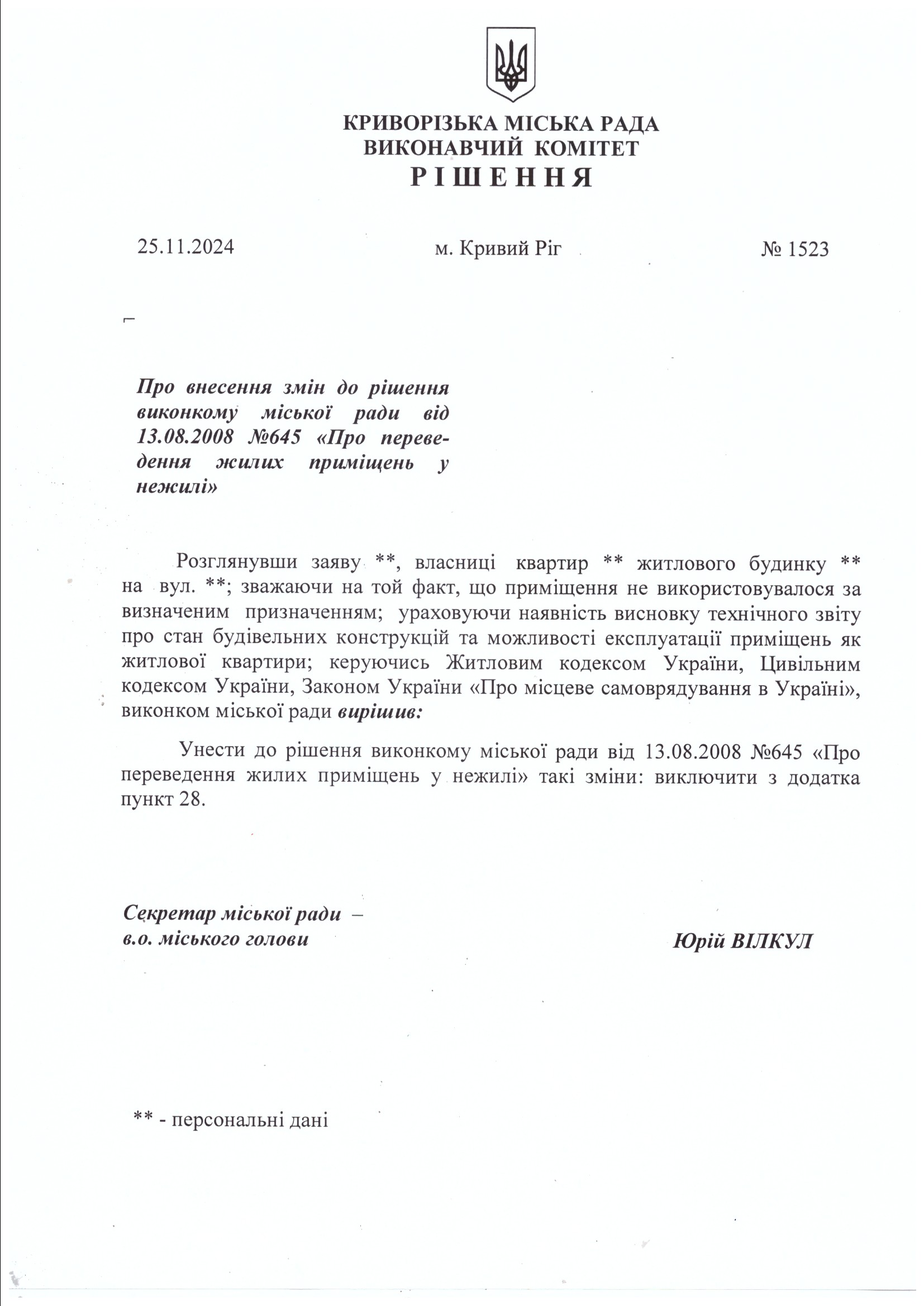 Про внесення змін до рішення виконкому міської ради від 10.10.2007 №676 «Про переве-дення жилих приміщень у нежилі»